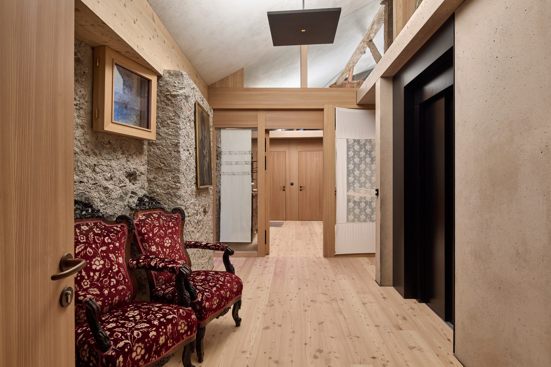 Das Projekt betrifft die Revitalisierung eines Teils des Klosterkomplexes Maria Trost im historischen Stadtteil Untermais in Meran. Der Eingriff umfasste das ehemalige Priorat, einige kleinere Nebengebäude, den Innenhof mit barockem Brunnen sowie den historischen Garten und erfolgte unter vollständiger Berücksichtigung der architektonischen und landschaftlichen Auflagen. Die Beleuchtung wurde so konzipiert, dass sie die neuen Nutzungen - Kloster und Pfarrbüros - unterstützt und dabei einen zurückhaltenden, maßvollen Ansatz verfolgt, der dem Charakter des Ortes entspricht. Besonderes Augenmerk galt den vertikalen Räumen: Im rund 6-7 Meter hohen Treppenhaus kamen Leuchten mit indirekter Lichtabstrahlung zum Einsatz, um visuellen Komfort, eine gleichmäßige Lichtverteilung und die Betonung der architektonischen Volumetrie zu gewährleisten, ohne invasive Elemente einzuführen. Das Licht integriert sich dezent in die bestehenden Strukturen, unterstützt die Lesbarkeit der Räume und historischen Materialien, begleitet die Wegeführung und stärkt den kontemplativen wie funktionalen Charakter des gesamten Komplexes.