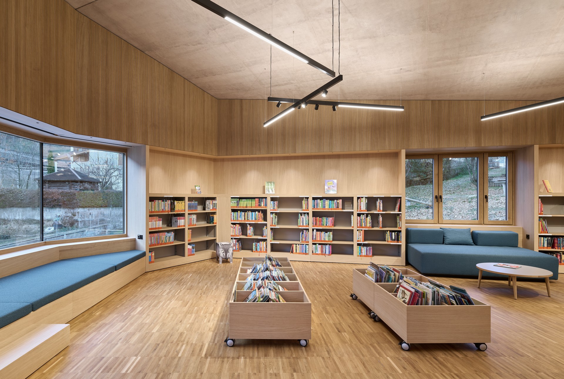 La Biblioteca di Foiana nasce come biblioteca integrata, unendo biblioteca pubblica e scolastica in un unico spazio accessibile sia dall’esterno che dall’interno dell’edificio scolastico. Le collezioni sono liberamente fruibili e lo spazio diventa un luogo di incontro aperto alla comunità.